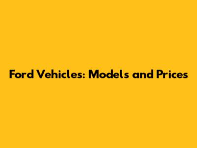 Ford Vehicles: Models And Prices