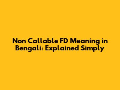 Non Callable FD Meaning In Bengali: Explained Simply